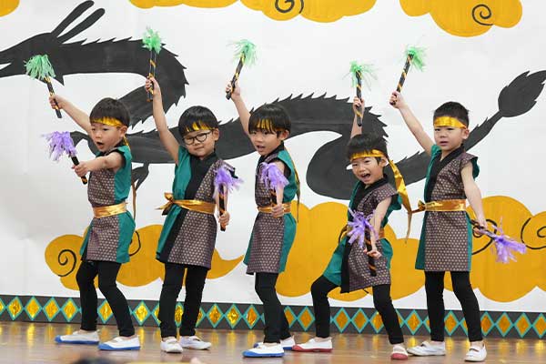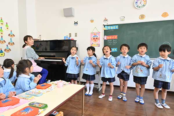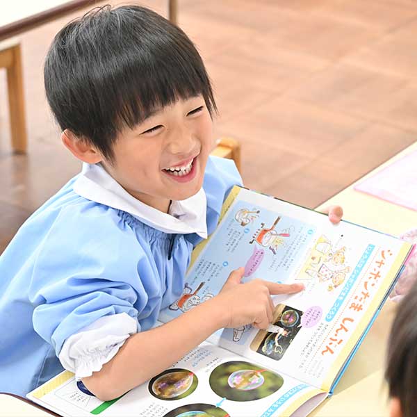 一般的に幼稚園が行っている製作や絵本、ワークやリトミックだけでなく、ピアニカや英会話、タブレット学習を意識した大型モニターを